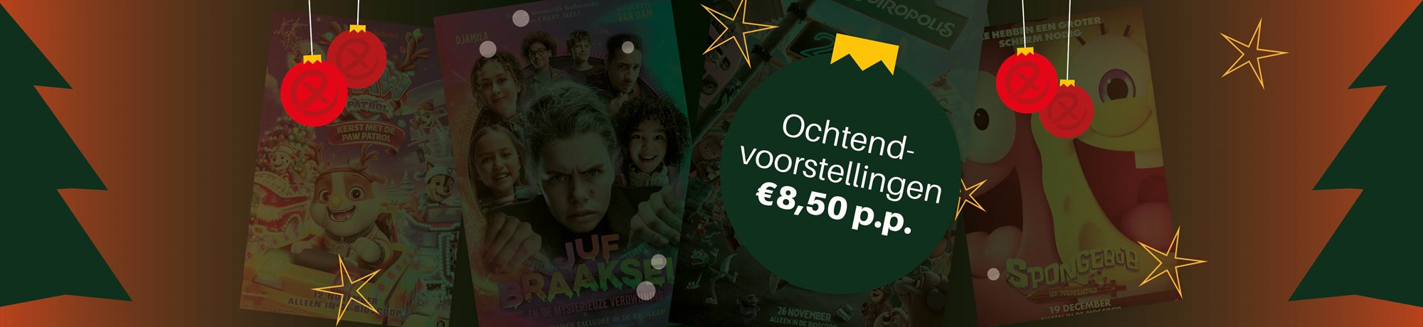 Tijdens de kerstvakantie kun je extra goedkoop naar de film! Alle ochtendvoorstellingen zijn namelijk € 8,50 per persoon. En natuurlijk zit je voor de prijs ook gewoon in zo'n heerlijke relax stoel! Tijdens de kerstvakantie heb je de keuze uit ochtendvoorstellingen van onderstaande films: